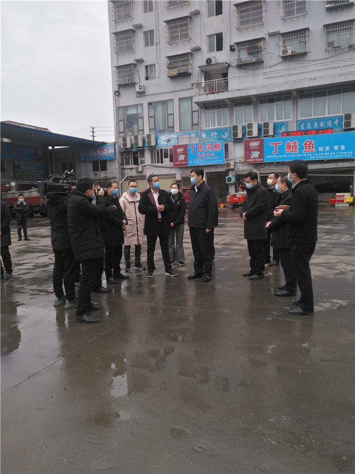 我公司是遂宁市政府确定的“新冠肺炎”疫情防控物资重点保供企业之一。2月7日上午,遂宁市委邵革军书记 市府邓正权市长、市农业农村局徐建军局长等一行亲临我公司,检查“新冠肺炎”疫情防控期间市场农副产品的准备及供应情况。当看到我公司“活禽生猪集中交易定点屠宰市场”和水产品批发市场保持了正常生产、经营,有效保证了市场供应时,邵革军书记和邓正权市长非常满意,对我公司猪肉储备充足且能够完全满足市场需求的情况给予了充分肯定,并高度赞扬我公司为稳定市场,保障市民生活所需做出了积极贡献。